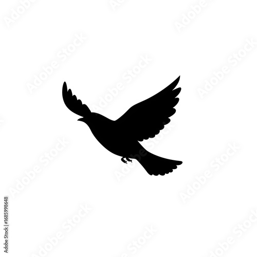 Fototapeta premium A silhouette of a bird in flight, with its wings spread wide against a white background.