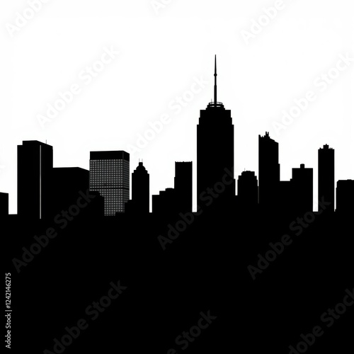 © Pixel Sage, Fototapeta premium A silhouette of a bustling city skyline at sunset skyline silhouette