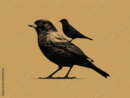 © Sung Hwan Kim, Fototapeta premium a silhouette of a crow and a crow on a plain beige background