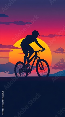Fototapeta premium A silhouette of a cyclist against a vibrant sunset, creating a dramatic...