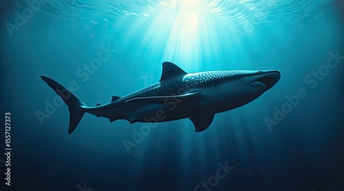 © Sofia, Fototapeta premium A silhouette of a diver swimming with a whale shark, luxurious and vibrant, a strong light source behind the subjects