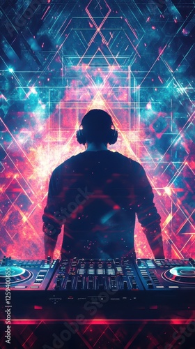 © RizArt, Fototapeta premium A silhouette of a dj with glowing abstract background