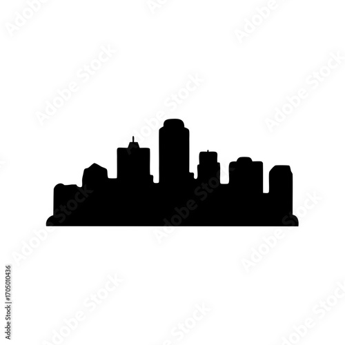 Naklejka premium A silhouette of a modern city skyline with tall buildings against white