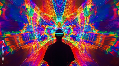 Fototapeta premium A Silhouette of a Person Standing Before a Vibrant and Abstract Kaleidoscope...