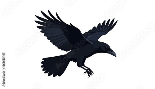 Fototapeta premium A silhouette of a raven in flight, showcasing intricate details and a strong...