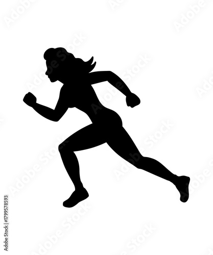 © Zaman, Fototapeta premium A Silhouette of a Woman Running with Determination Shows Speed and Agility in a Simple Yet Powerful Image