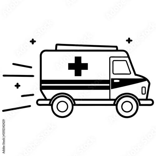 © Lamiya, Fototapeta premium A silhouette of an ambulance rushing forward with emergency lights