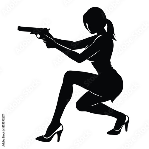 © piyal, Naklejka premium A silhouetted figure of a woman crouching down in a confident pose