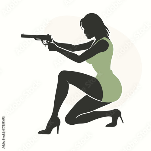 © piyal, Naklejka premium A silhouetted figure of a woman crouching down in a confident pose