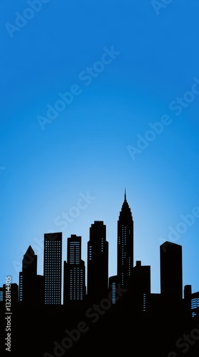 Naklejka premium A silhouetted urban city skyline against a vibrant blue sky