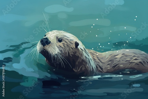 © create, Fototapeta premium A silly and playful otter swimming in a river Generative AI