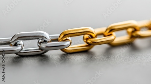 Obraz premium A silver chain interlaces with a gold chain on a sleek surface, emphasizing...