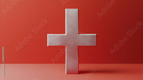 © momostudio, Obraz premium A silver cross stands against a red background.