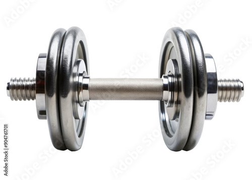 Fototapeta premium A silver dumbbell with a textured grip. Suitable for various strength training exercises. Isolated on transparent background, png.
