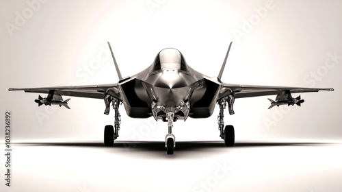 © dropideas, Naklejka premium A silver fighter jet on a white background.