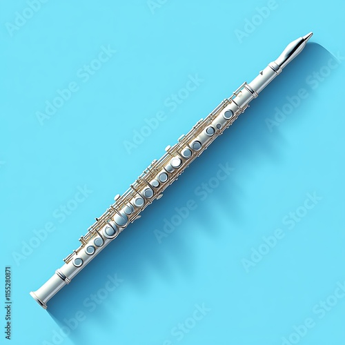 © Tiyur, Fototapeta premium A Silver Flute Rests Against A Light Blue Background