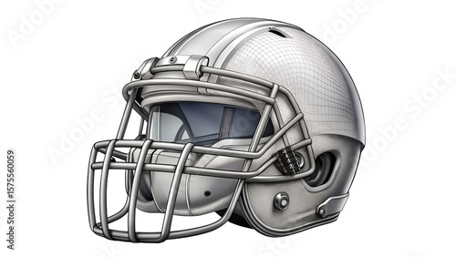 Fototapeta premium A silver football helmet with a protective face mask and visor is shown from...