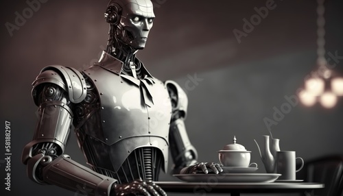 © Sndor, Fototapeta premium a silver robot with big eyes