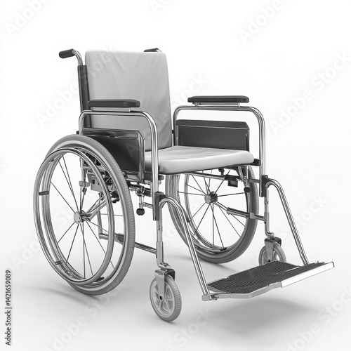 © Shakhawat, Fototapeta premium A silver wheelchair with white seat and backrest isolated on white background