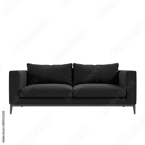 Obraz premium A simple and modern living room scene featuring a black couch with two...