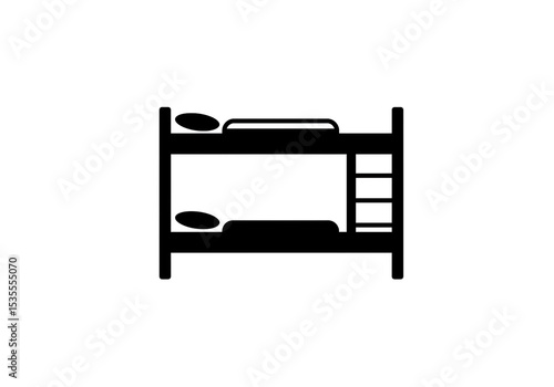 © Muhammad, Obraz premium A simple black and white graphic of a bunk bed with pillows and a ladder on a white background