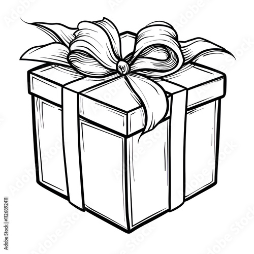 © Tanyastock, Obraz premium A simple black and white illustration of a gift box with a bow