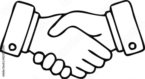 Naklejka premium A simple black and white line art illustration of a professional business handshake, symbolizing partnership, agreement, and a successful deal.