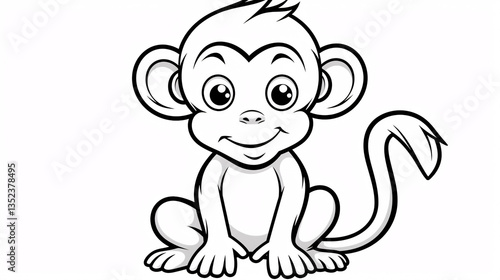 Obraz premium A simple black and white monkey-themed coloring page for kids, featuring fun...