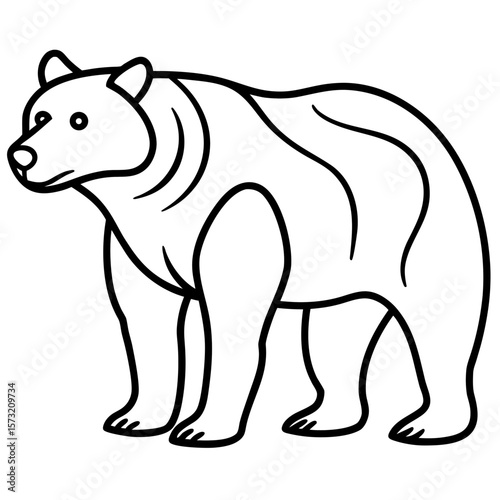 © Best Image, Obraz premium A simple black and white outline drawing of a standing bear silhouette