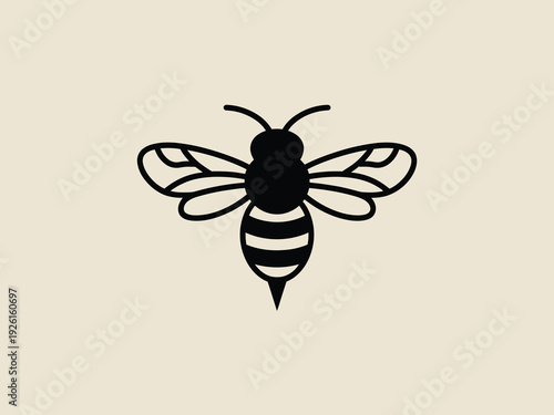 Fototapeta premium A simple black bee illustration on a beige background.