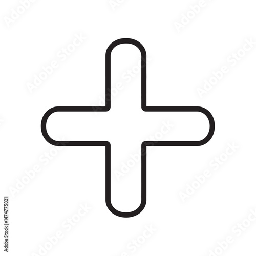 Fototapeta premium A simple black plus sign symbol with rounded edges creates a minimalistic visual