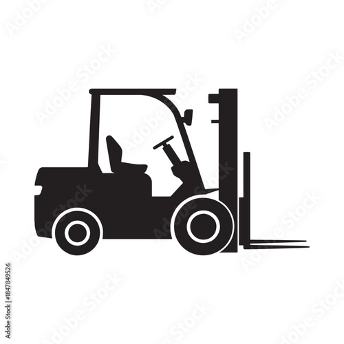 Naklejka premium A simple black silhouette of a forklift truck on a white background
