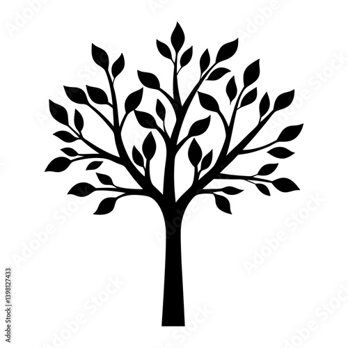 © Tanjila, Obraz premium A Simple Black Silhouette of a Tree with Lush Foliage and a Thick Trunk