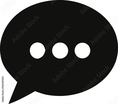 © GlobalVector Design, Fototapeta premium A simple black speech bubble icon with three white dots inside representing ongoing conversation or typing