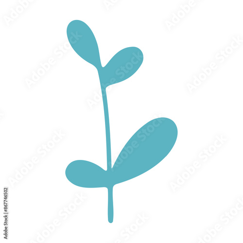 © tinybrushcreations, Fototapeta premium A simple blue plant or leaf shape with two curved branches or stems