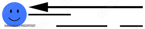 © robu_s, Fototapeta premium A simple blue smiley face with a large black arrow pointing left and two horizontal black lines. Ideal for communication themes direction or movement instruction guiding or navigation simplicity