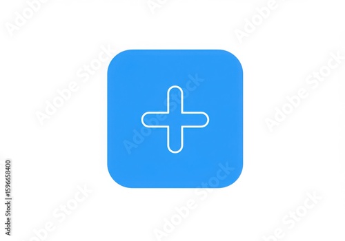 Fototapeta premium A simple blue square with a white plus sign inside isolated on white background