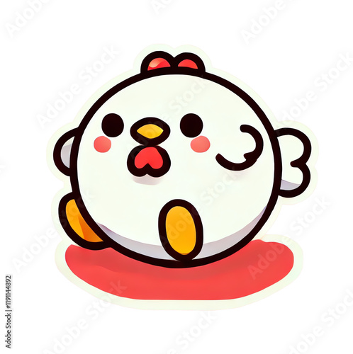 © monkik, Obraz premium A simple, cartoon-style illustration of a cute chicken
