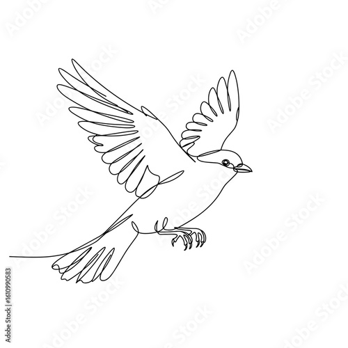 © Екатерина Климова, Fototapeta premium A simple continuous line drawing of a bird in flight.
