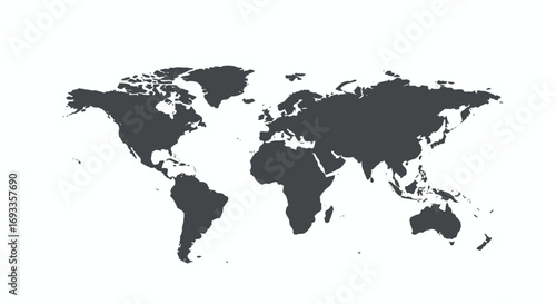 Naklejka premium A simple, dark gray vector illustration of a world map on a white background,...