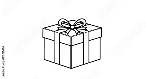 © Kotez, Fototapeta premium A simple, detailed, black and white illustration of a gift box with a bow on top.
