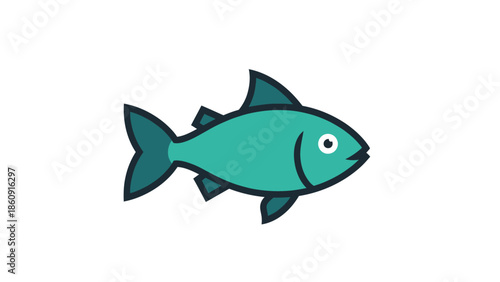 Fototapeta premium A simple flat design illustration of a stylized turquoise fish with dark outlines on a white