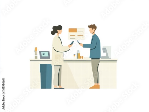 © shirophoto, Obraz premium A simple, flat illustration depicting an online doctor's consultation.