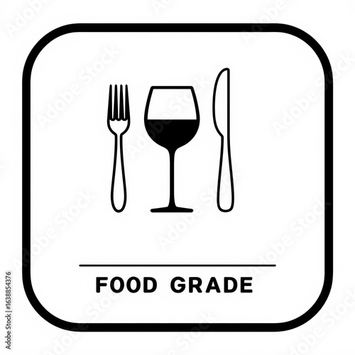 Fototapeta premium A simple food grade label featuring a fork, glass, and knife, indicating suitability for food-related use