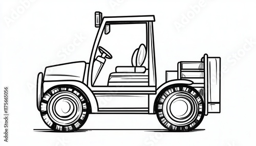 © Gudang, Naklejka premium A simple forklift truck line art illustration. Suitable for coloring pages, activity books, or educational materials for children.