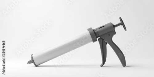 Fototapeta premium A simple gray caulking gun with a long white cartridge rests on a plain white...