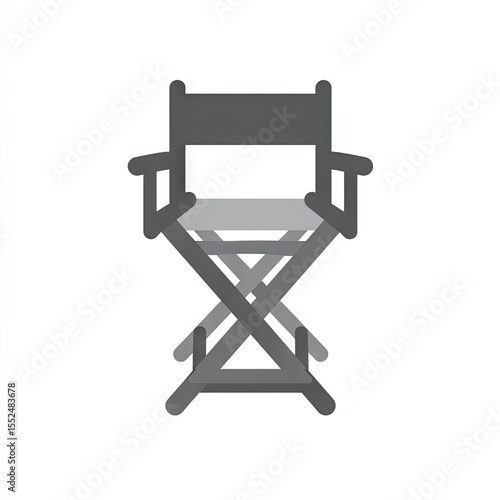 Fototapeta premium A simple, grayscale illustration of a director's chair, featuring a flat design with a slightly shadowed effect, showcasing its foldable X-frame