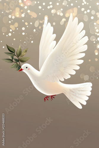 © natthakarn, Fototapeta premium A Simple Greeting Card Featuring a white dove carr