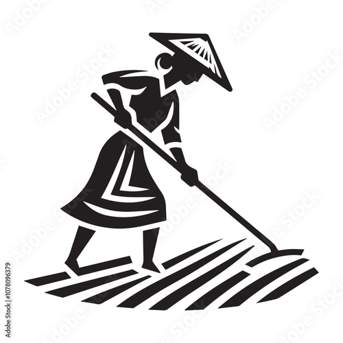 © makmur, Fototapeta premium a simple illustration of a farmer plowing field - vector logo design