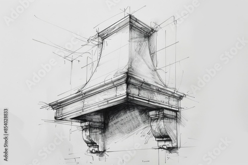 © Fotograf, Obraz premium A simple illustration of a fireplace in grayscale colors